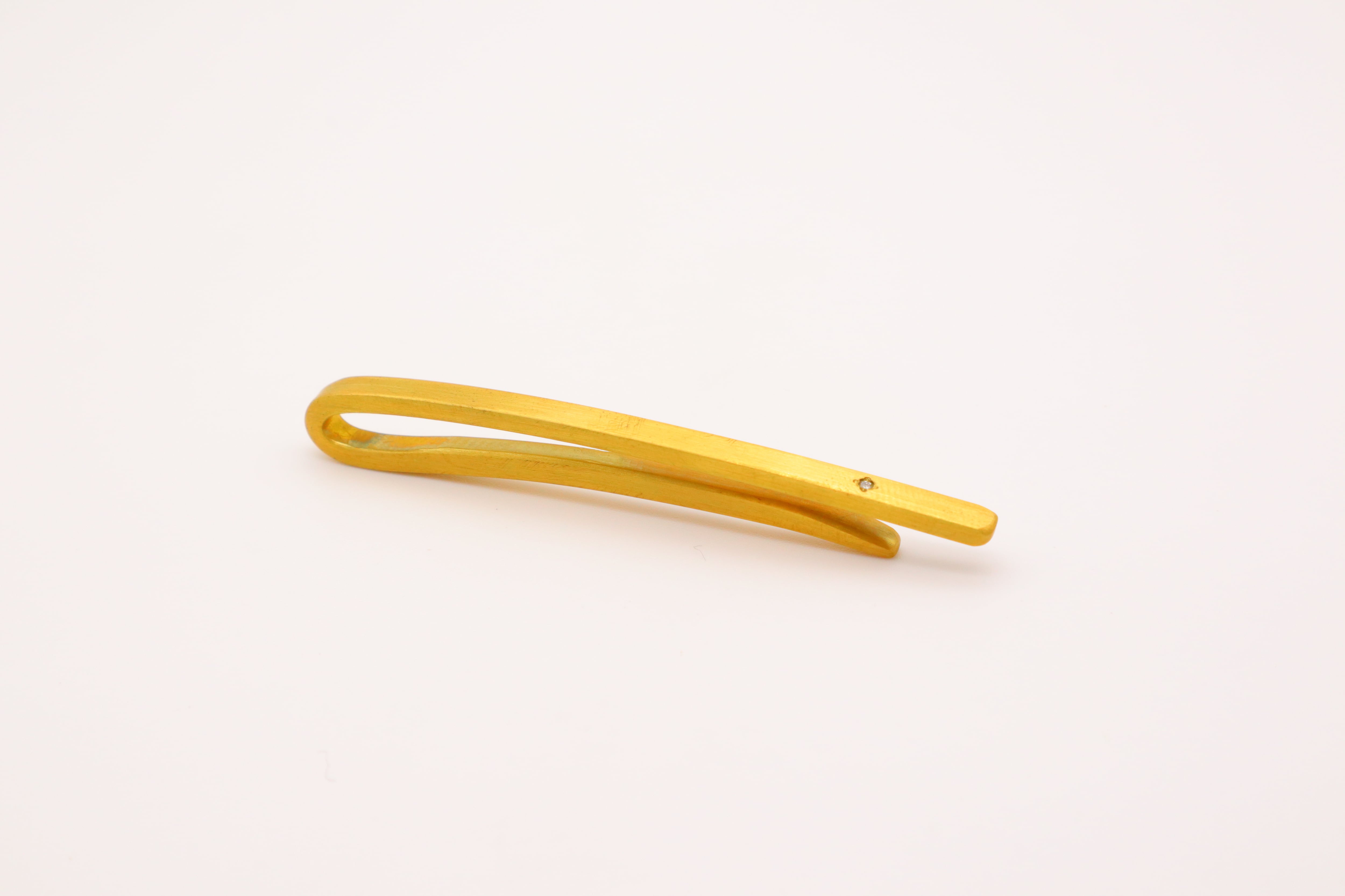 ポイントにダイヤをあしらった、シンプルなタイバーです。