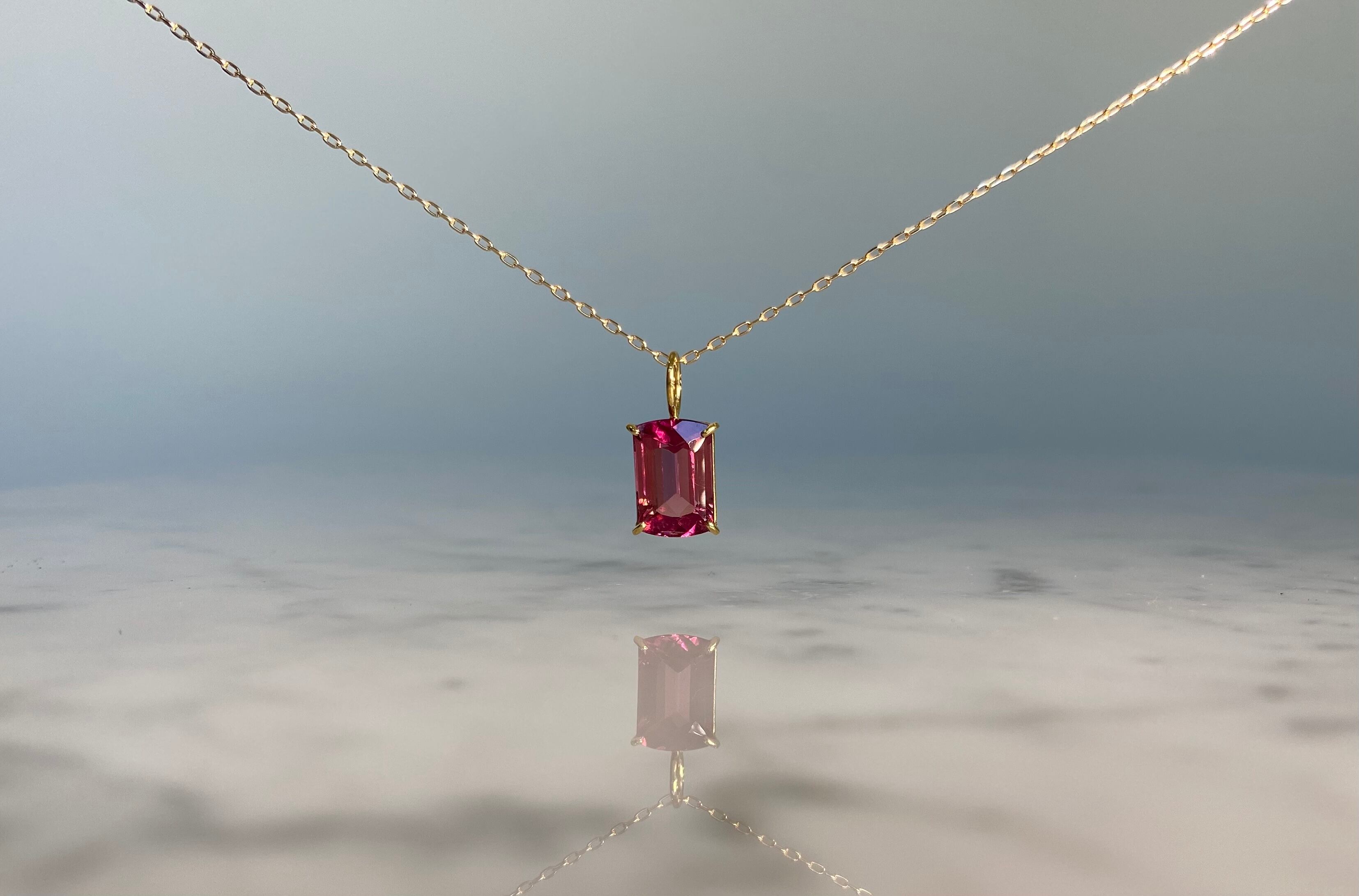 とても発色の良いピンクトルマリンを一点物のチャームに仕立てました。