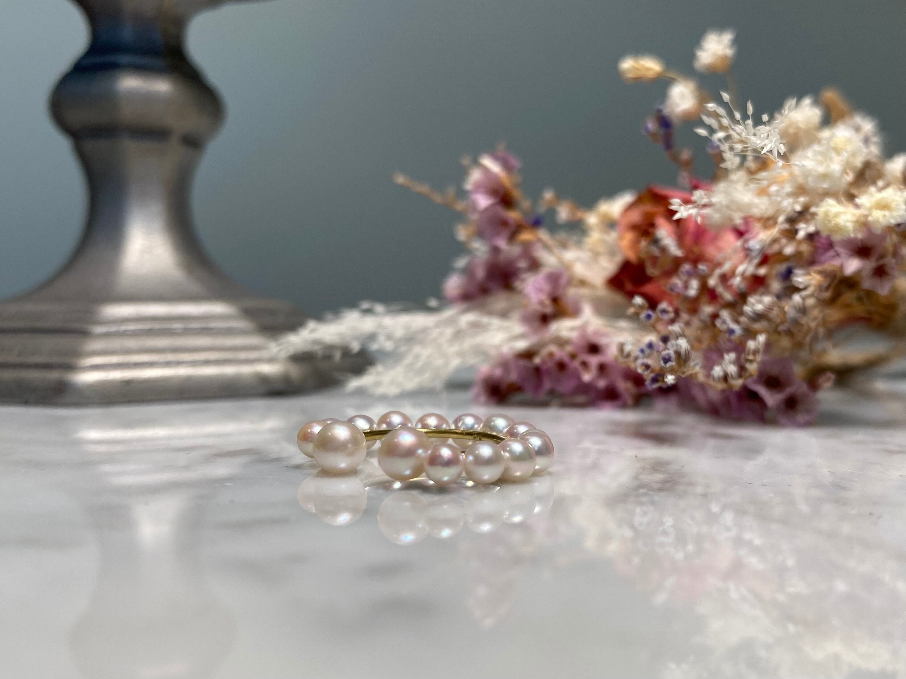 小粒のパールをランダムに配置した遊び心のある可愛らしいイヤーカフ。